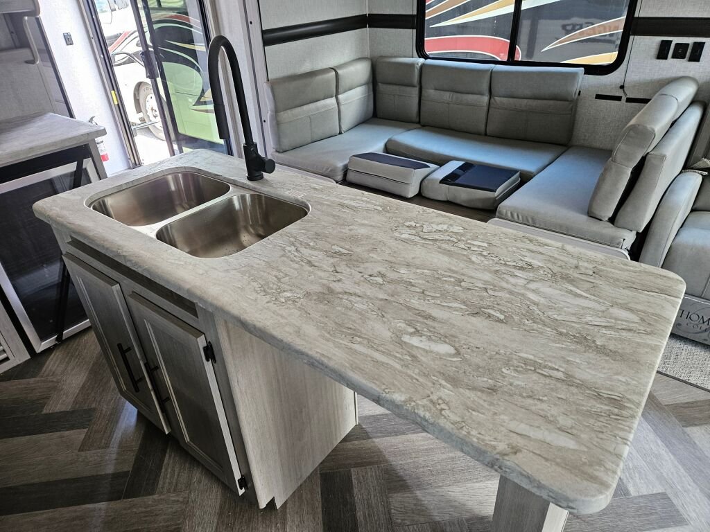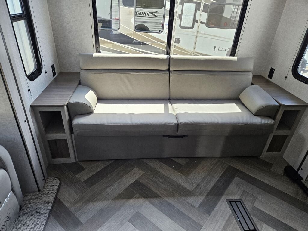 Introducing the incredible 2024 Crossroads Zinger ZR380FB, a remarkable RV designed for your unforgettable adventures on the road. With an impressive length of 42.32 feet, this spacious travel trailer is perfect for those who seek comfort and style while exploring the great outdoors. This model, a brand new addition to the Zinger family, features a dry weight of 10,182 pounds and a gross vehicle weight rating (GVWR) of 13,490 pounds, making it a robust choice for your travel needs. The ZR380FB accommodates up to six people comfortably, ensuring everyone enjoys a cozy night rest in the well-thought-out living area and sleeping quarters. A distinctive feature of this RV is its three slide-outs, which significantly enhance the interior space, creating a home-like atmosphere whether you are parked at your favorite campsite or exploring new locations. You will also appreciate the practicality of the front and rear power leveling jacks that make setup a breeze. With one awning providing shade and comfort outside, you can enjoy the fresh air without compromising on convenience. Stock#: E5776, VIN: 4YDTZRU29RS370882.