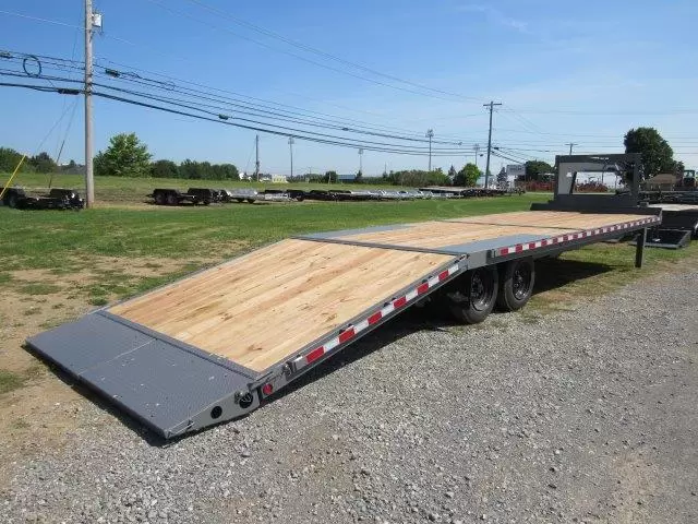 - 22′ Flat Deck Plus 8′ Hydraulic Beavertail with 2′ Diamond Plate Transition Flip Out